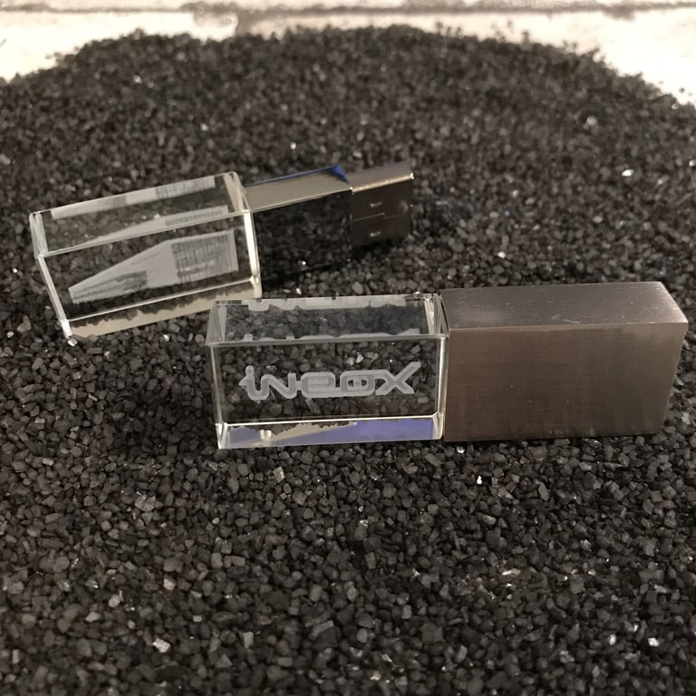 Contrairement à une simple impression en surface, la gravure interne donne une dimension esthétique supplémentaire à la clé USB. En effet, le logo semble suspendu dans le verre, créant un effet visuel particulièrement élégant.