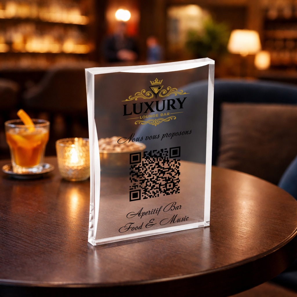 Grâce à sa transparence et à son rendu haut de gamme, cette plaque offre un support visuel premium capable de sublimer tous vos messages. De plus, sa finition soignée avec sommet courbé apporte une touche design distinctive qui attire immédiatement le regard.