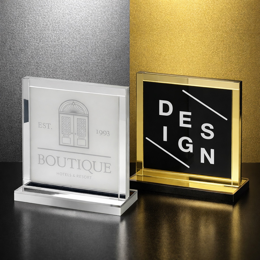 Avant tout, le trophée plexiglas carré se distingue par son design épuré et sophistiqué. Sa forme carrée apporte une sensation de stabilité et d’équilibre, tandis que ses matériaux premium lui confèrent une allure résolument moderne. Ainsi, il s’intègre parfaitement dans tous les environnements : bureau, vitrine, salle de réunion ou espace d’exposition.