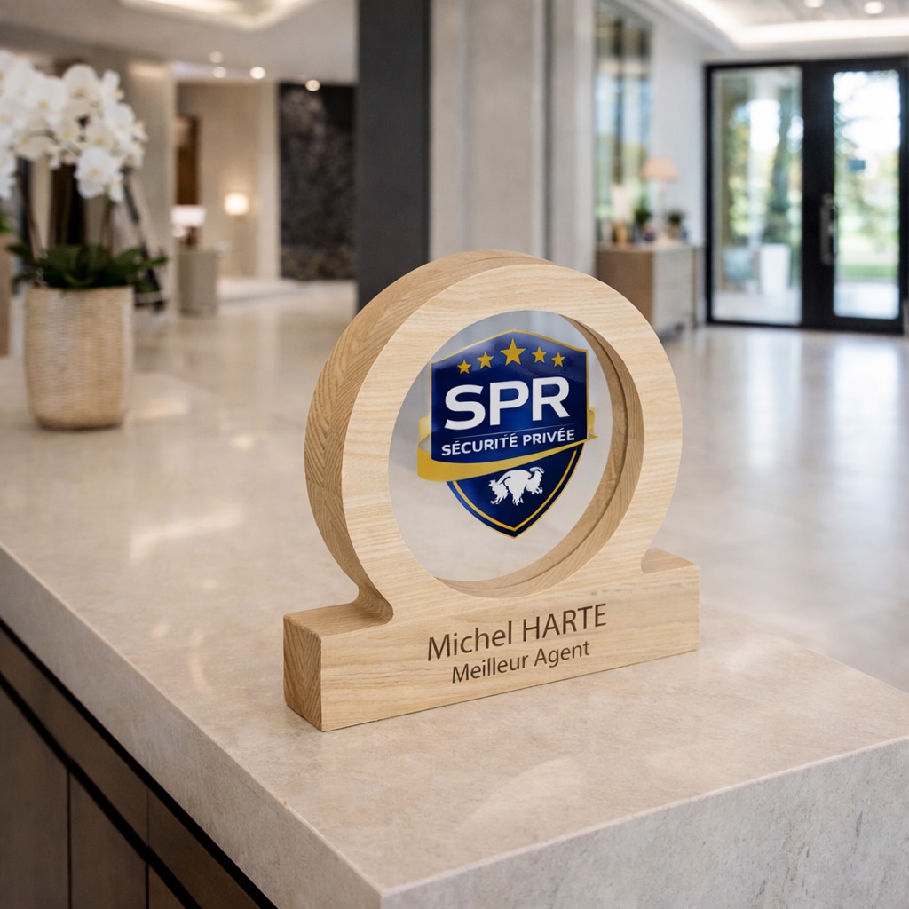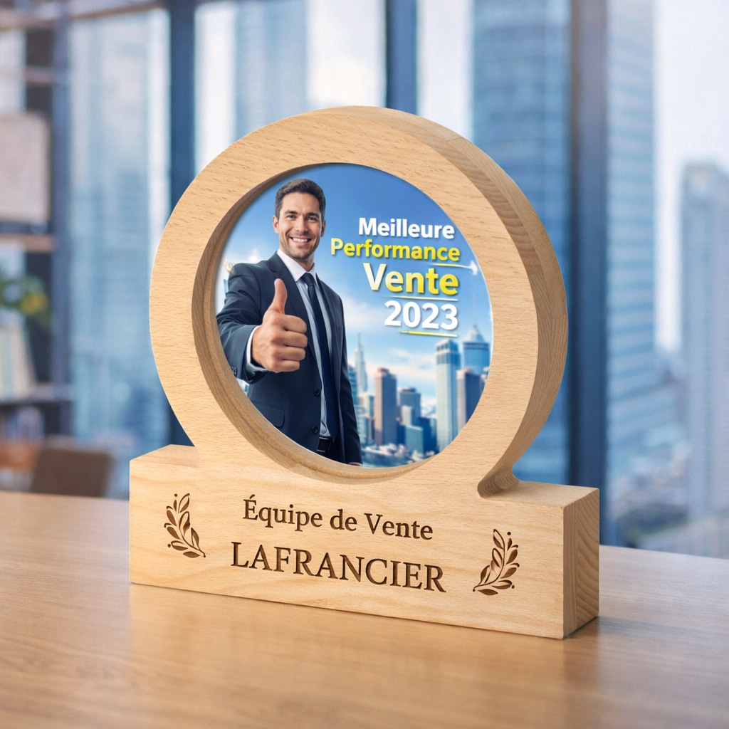 Trophée rond bois et plexi personnalisé : une récompense moderne et valorisante