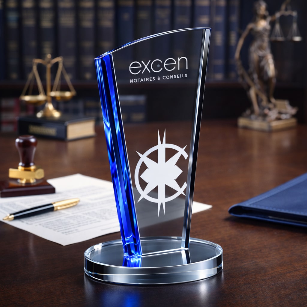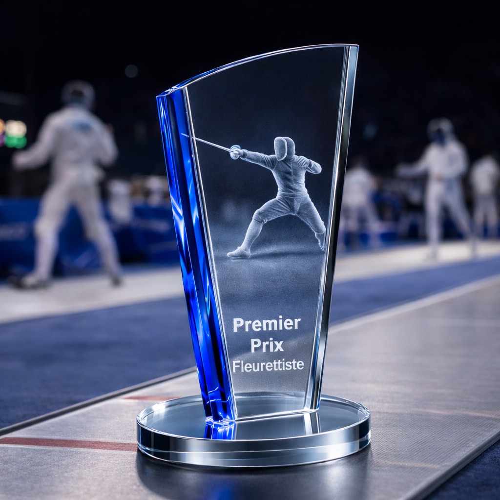 Le trophée verre voile socle rond incarne parfaitement l’alliance entre design contemporain et savoir-faire de précision. Sa silhouette élégante, sa transparence exceptionnelle et sa gravure laser interne en font une récompense particulièrement valorisante.